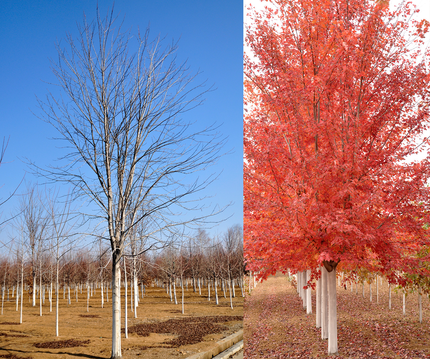 银红槭Acer rubrum,槭树科槭属。落叶乔木,3-4月开花,花为红色,稠密簇生,新叶多呈微红色,秋季叶片会根据土壤酸碱度和环境变化呈现鲜红色、黄色、橙黄色,炫彩夺目;耐旱、耐涝、抗风、耐寒,是近几年引进的美化、绿化城市园林的理想珍贵树种之一;在我国辽宁以南、华北地区、广东、广西以北均可栽植。