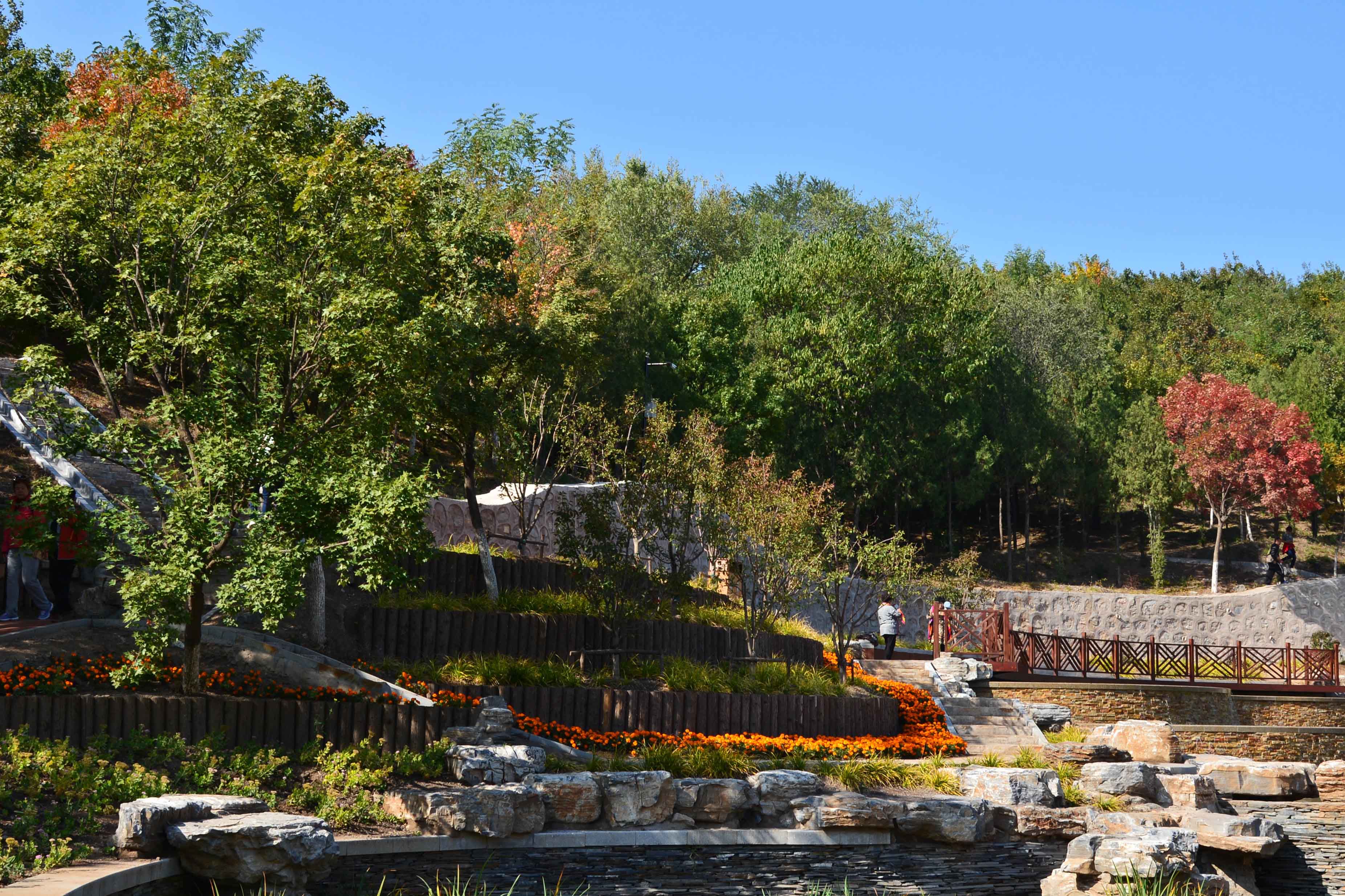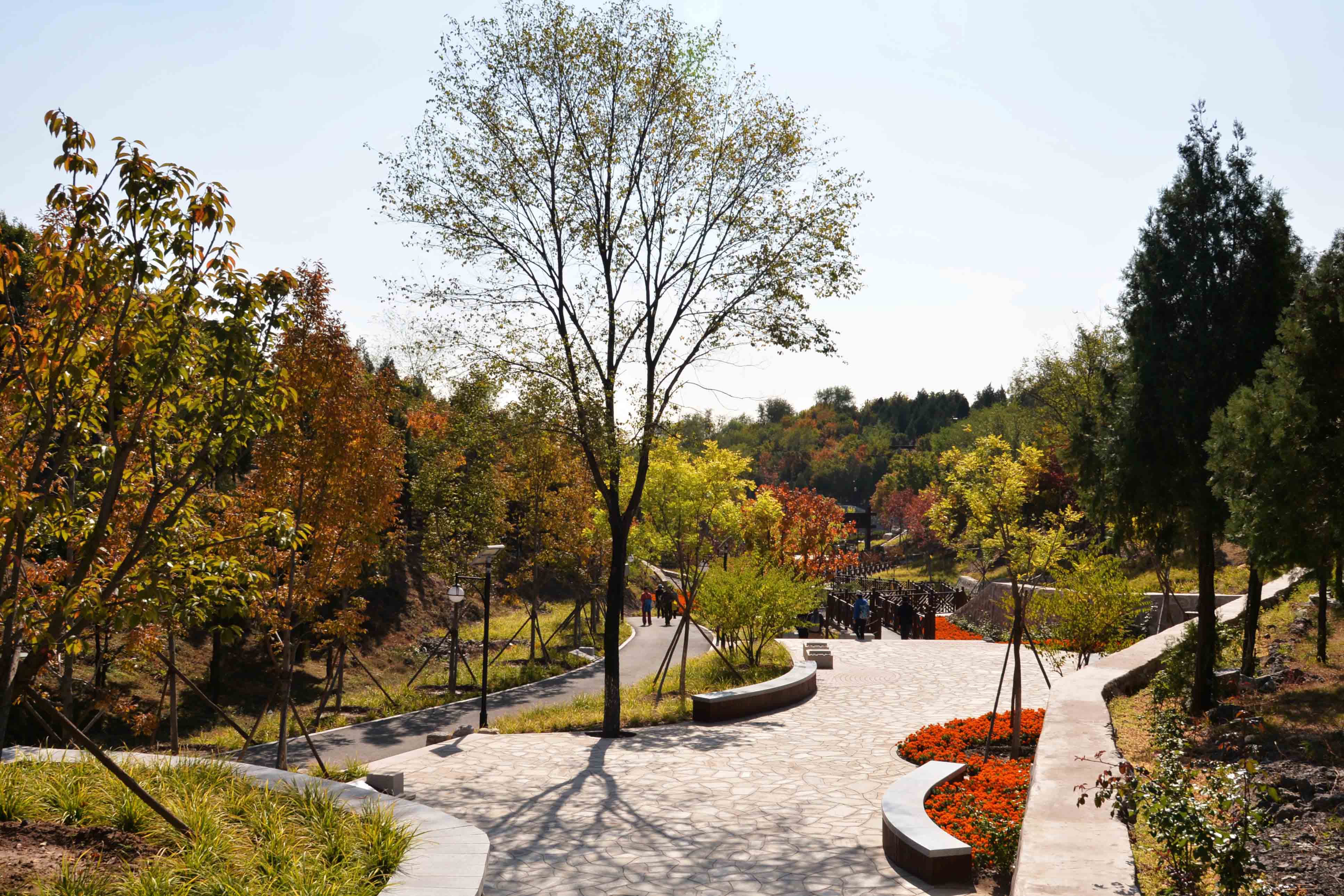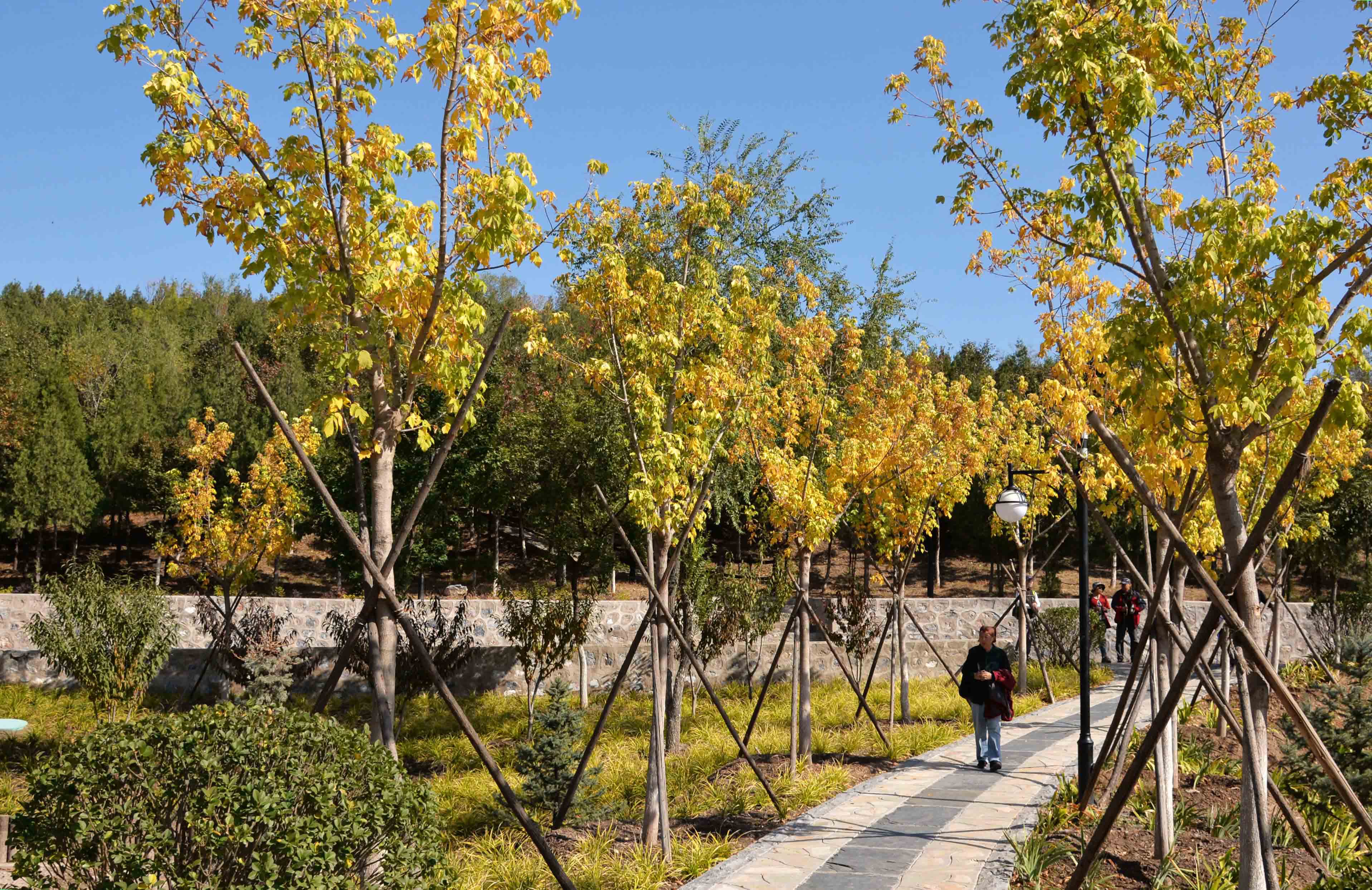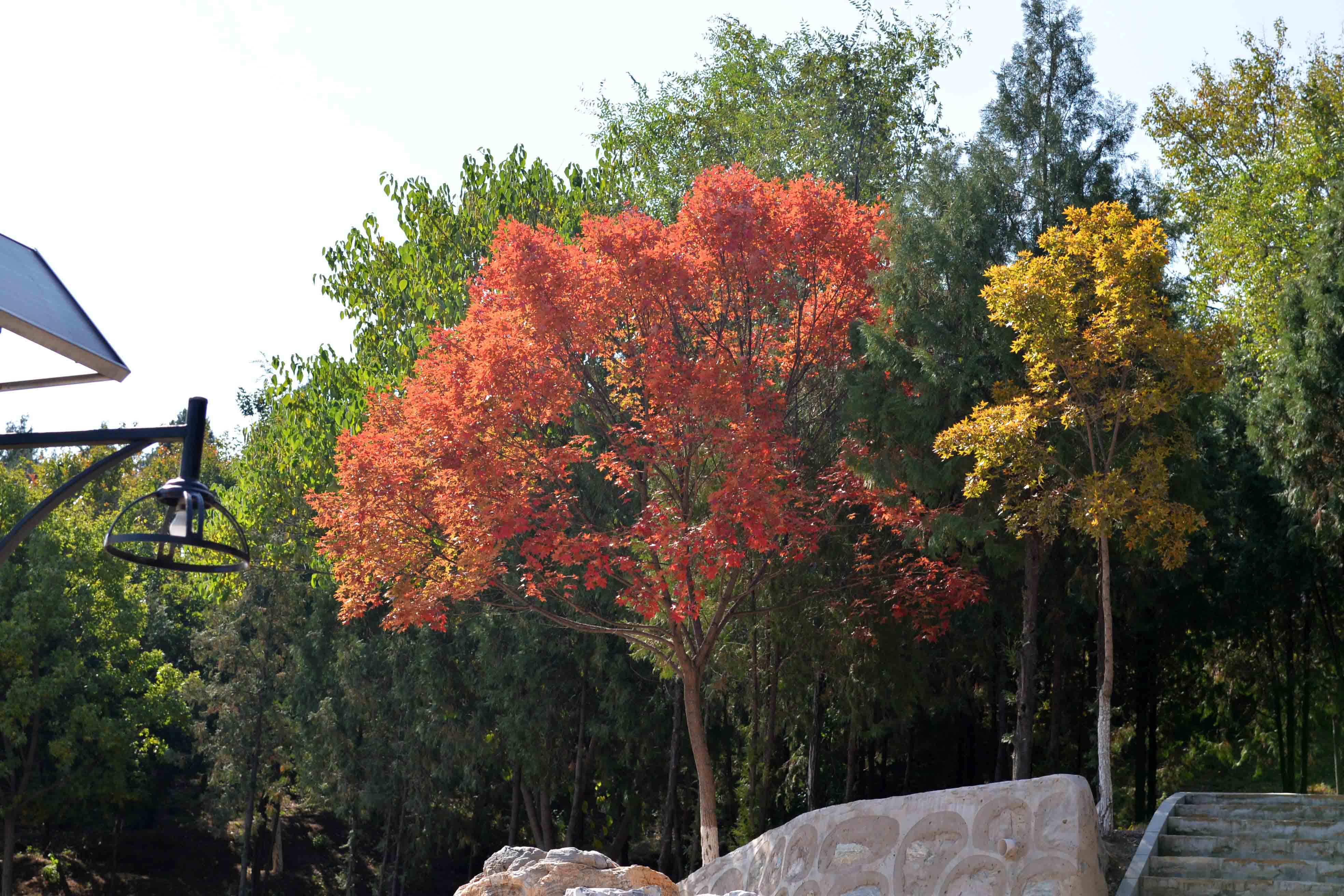 “山远天高烟水寒,两岸楼台枫叶丹。”自古以来,白墙红叶是古典园林中一大别致景观,红叶散落在林中,灿若云霞。由于绚丽的秋色叶景观,京彩的彩叶树被广泛的应用在北京市各重点工程中,如大家看到的北宫森林公园。